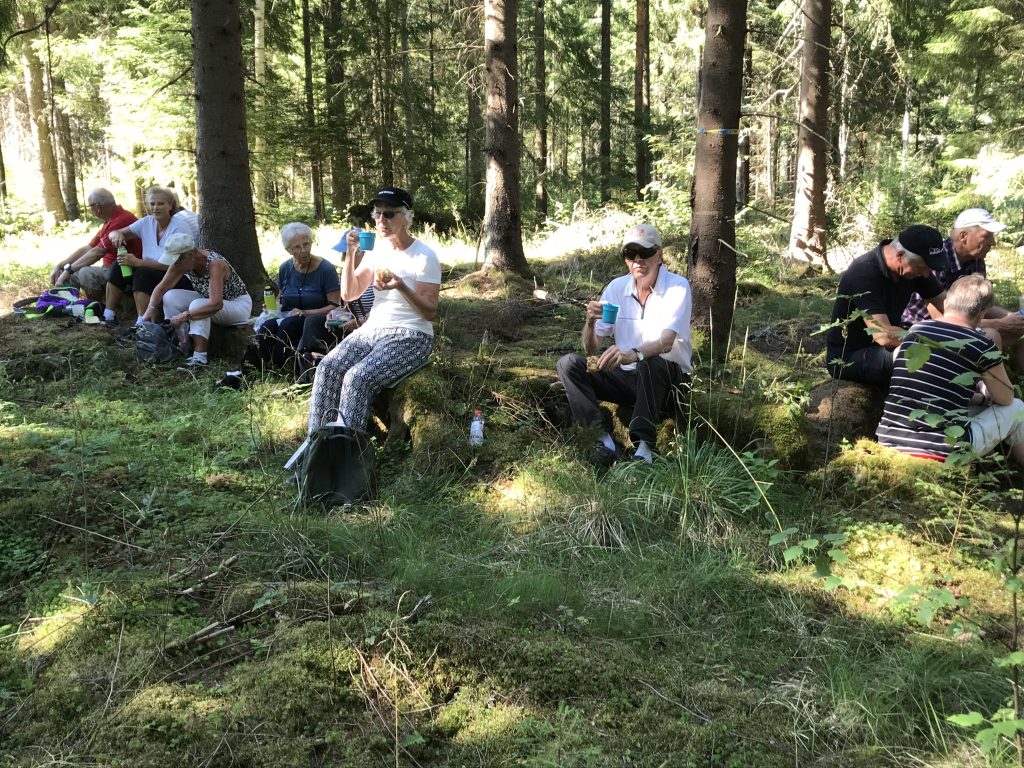12 obevekliga, väl medvetna om att i dag blir det varmt, gav sig iväg till Gösta Pettersson på Sjöberg där vi parkerade. Det blev rekordvärme, 31 grader visade termometern när vi kom tillbaka efter drygt 4 km.